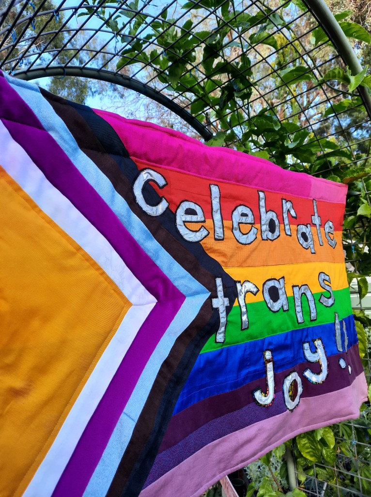 I have friends who are trans. I have friends who hate on trans people, too. I’m not a fan of hating. I am especially not a fan of hating that places people’s lives and wellbeing in danger, as so much hating does. Today my fabulous friend, the one I sew with, was asking me if there was a trans day that this quilt could participate in, in some way. In my mind, the best known trans day of the year is Transgender Day of Remembrance. It is a day in remembrance of all those who have died as a result of transphobia. In particular, those who have been murdered. When I told her this, her face was a picture of sorrow and shock. I have made this quilt because I want so much more for my trans friends (and frankly, for total trans strangers). I want more for them than the rise and rise of transphobia and laws restricting the rights and freedoms of trans people. I want more for them than recognition that Trans Lives Matter (as they obviously do). I want joy for them. I want to share their joy and delight in it.