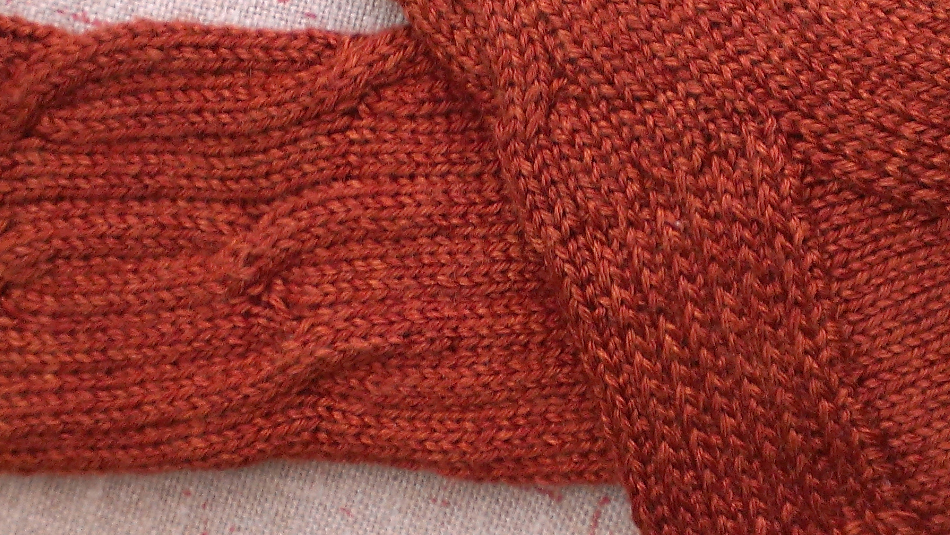I have mended this top quite a bit due to the monster season of m*th activity a year or two back. The darns are in various colours, some quite tasteful. These ones are still pale blue and pale purple, as they were after early washfastness testing in 2013. I dyed these threads with plum pine.