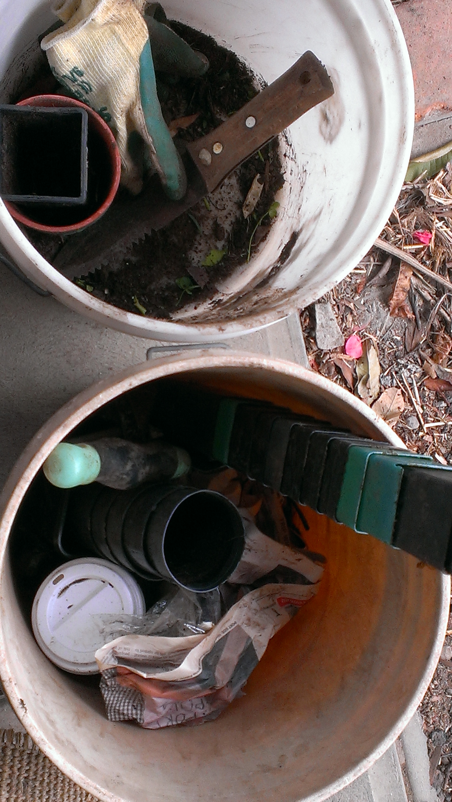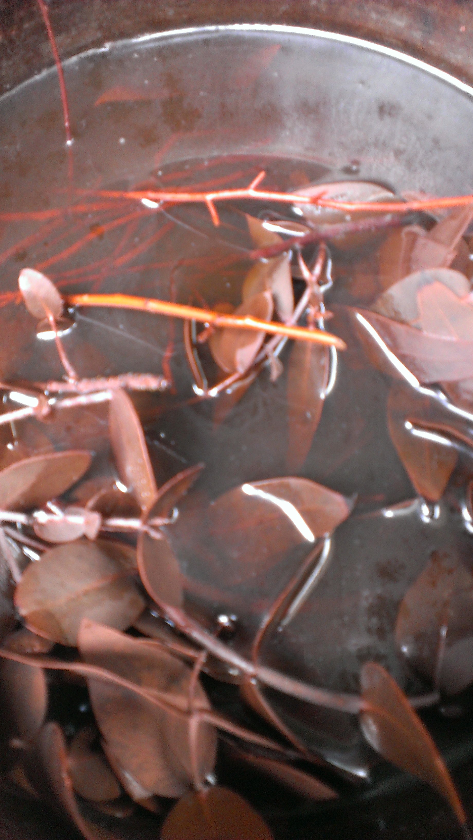 I settled on a pot full of dried E Cinerea leaves. This rainwater tank finally has rain in it again.