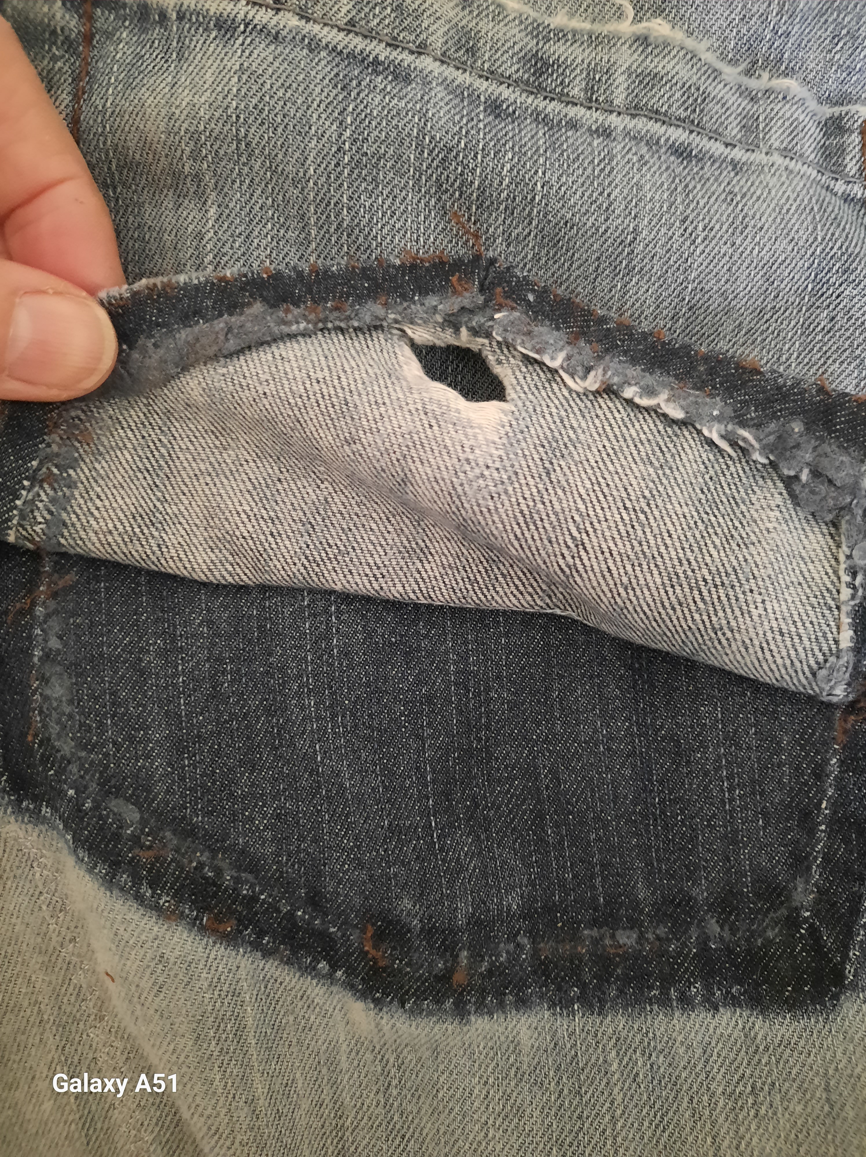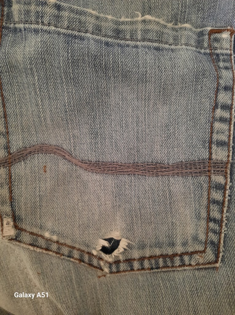 Menders on social media have done some first-rate work in an effort to destigmatise mending necessitated by “chub rub” (usually used to refer to abrasion between the thighs) as well as making the “rear end mend” (mending the seat of a pair of jeans or other pants) a recognisable category of mending with its own hashtags, techniques and exemplars.