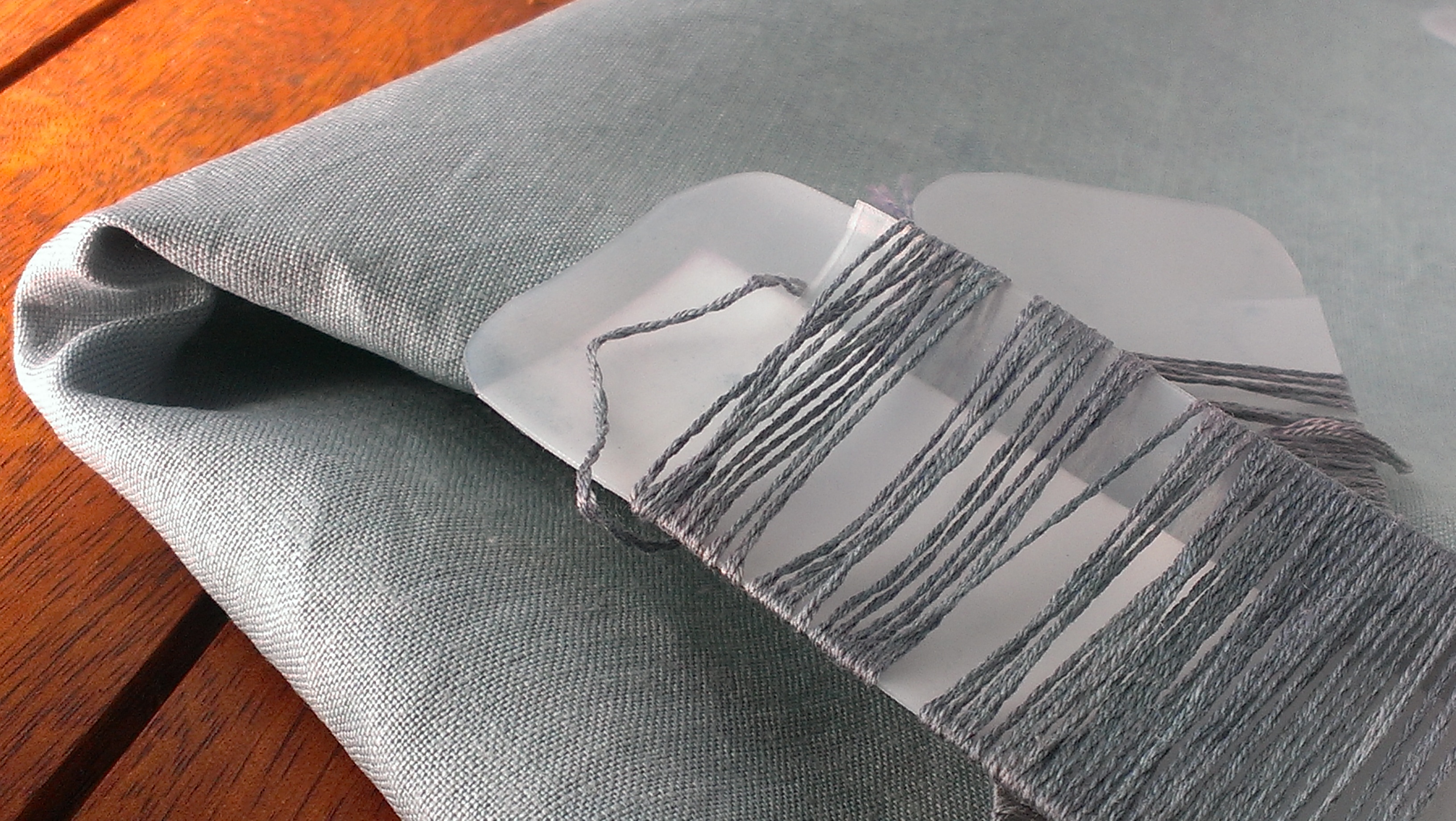 This next one has been rated suitable as a gift for my mother-out-law, who is apparently generous enough in her assessment of my skills to talk to her friends about my crafting sometimes. She has friends who have been weavers and dyers for years. She herself has been a wonderful garment creator for decades and keeps thinking she has given it up and then changing her mind, so her judgment may not be unbiased but I am flattered by it nonetheless. Her bag has been finished with a strip from a heavy weight ramie shirt found at an op shop (thrift store)–beautiful fabric and sewing skill but an appalling garment I felt no compunction about cutting up and redeploying. Most of it became another bag complete with interior welt/flap pockets which had been a beautifully crafted feature of the front of the shirt. Sadly they were an offence against fashion even to me, and I don’t hold with fashion much!