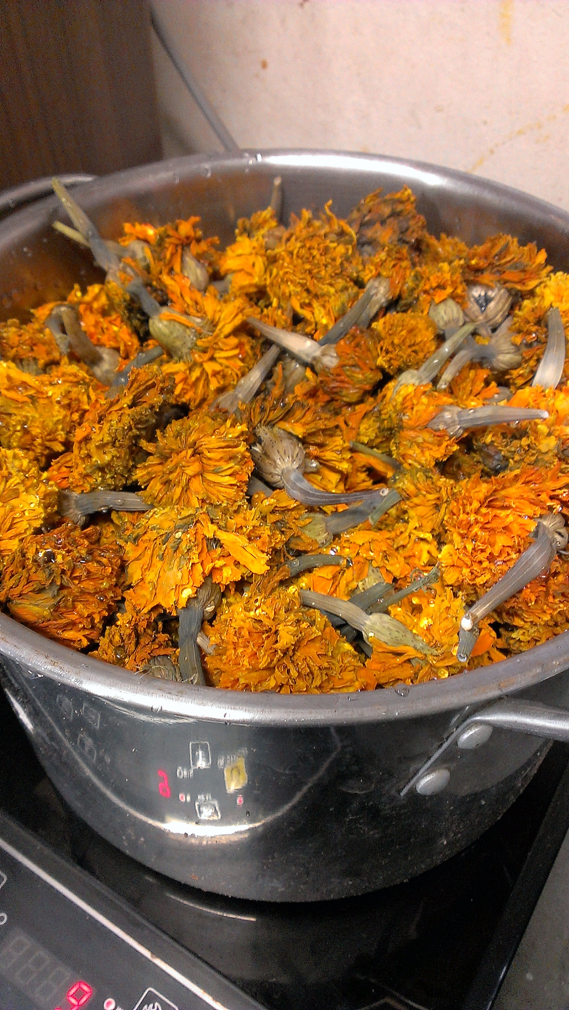 Here is the “sanderswood” just after I poured boiling water over it–Jenny says this looks like a logwood bath to her.  I bow to her much more extensive experience and wisdom, without hesitation.