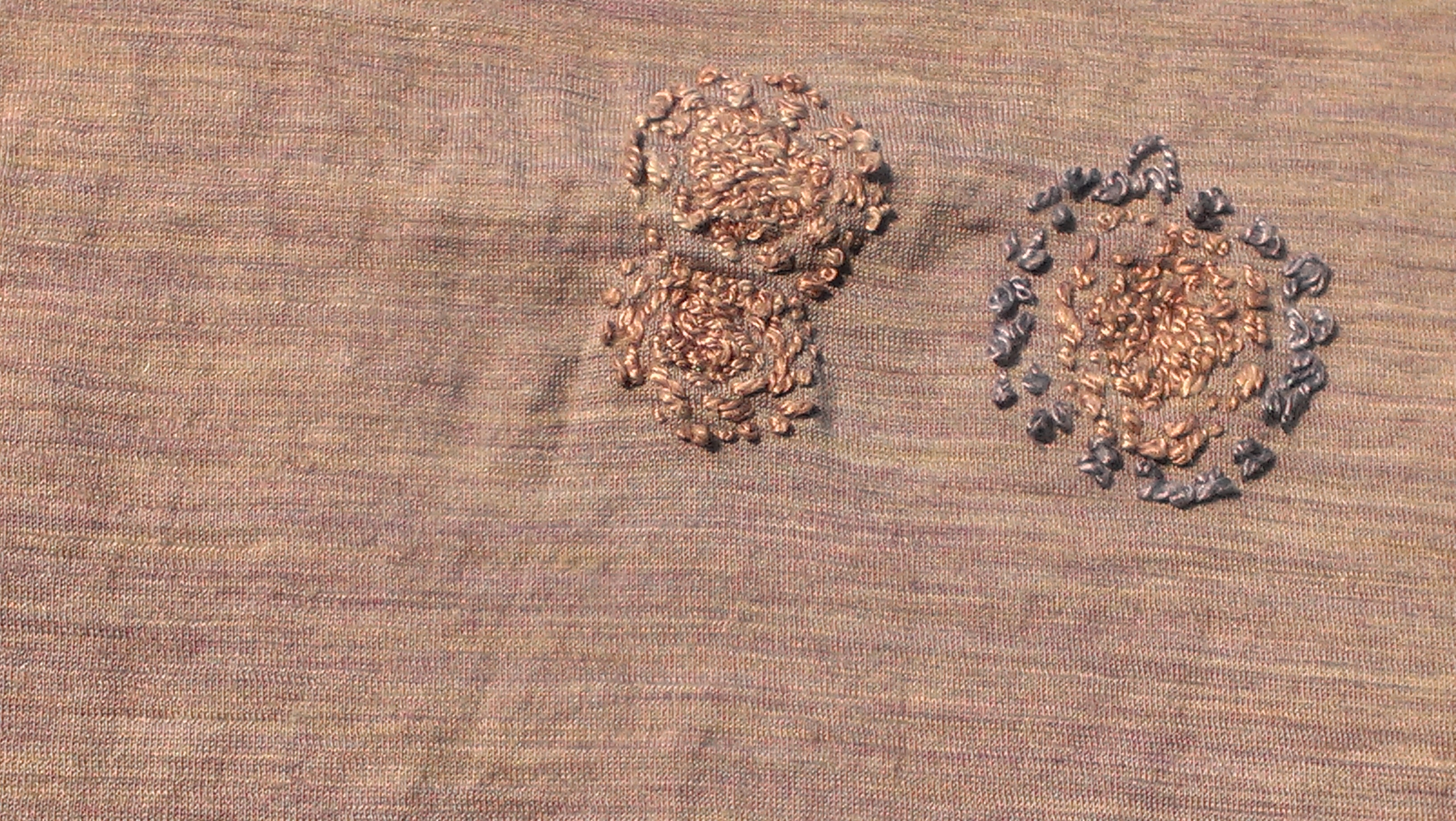 Early signs are that my silk threads dyed without alum will not be washfast. My mending has changed colour in only a couple of washes, and seems to be Ph sensitive, with pink without alum noticeably paler and purple with alum (the contrasting outermost ring on the right) turning blue in a mildly alkaline wash.